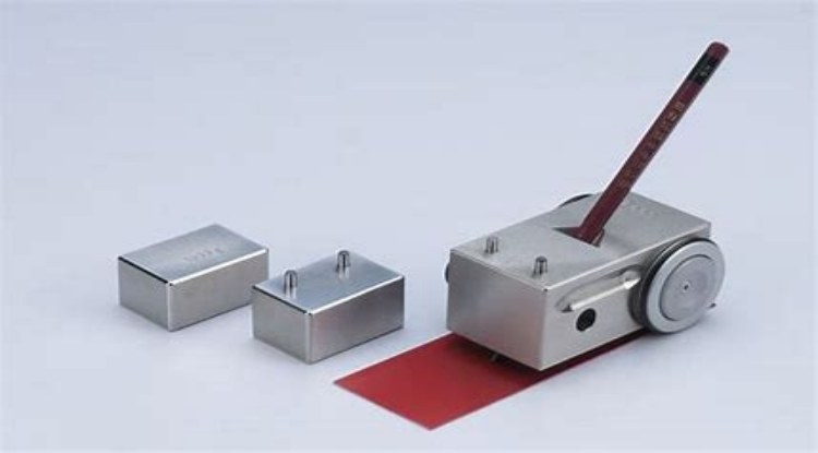用規(guī)定尺寸、形狀和硬度的鉛筆芯在(7.35±0.15)N的負(fù)荷下以45°角向下壓在漆膜表面上,通過在漆膜表面推動(dòng)鉛筆,逐漸增加鉛筆的硬度直至漆膜表面出現(xiàn)劃痕或其他可見缺陷,以沒有使漆膜出現(xiàn)缺陷的最硬鉛筆的硬度表示漆膜的鉛筆硬度。